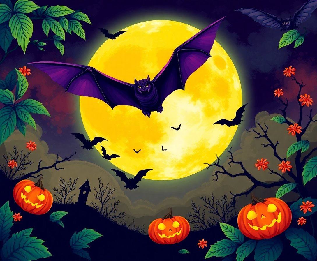 Transform your space with the enchanting Tropical Lunar Bat Flight Paint By Numbers design. This captivating kit features mysterious bat silhouettes against a luminous harvest moon. Create a stunning masterpiece that perfectly captures vintage macabre Halloween charm.