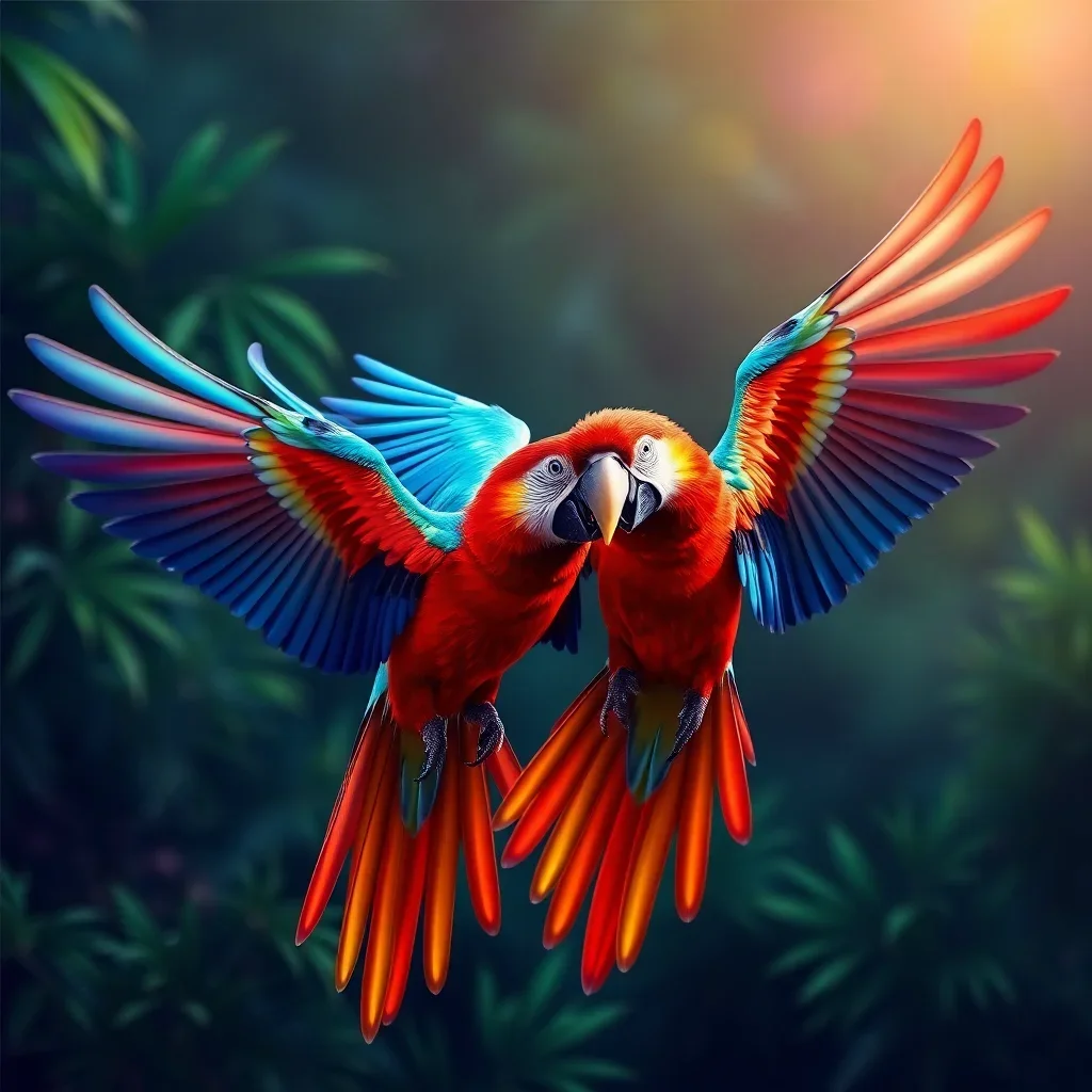 Ultimately, step back and admire your completed masterpiece showcasing these majestic birds in full flight. The vibrant tropical palette creates a stunning focal point that brings the warmth and energy of the rainforest into your space. Your artistic achievement celebrates both nature’s beauty and your creative accomplishment.
