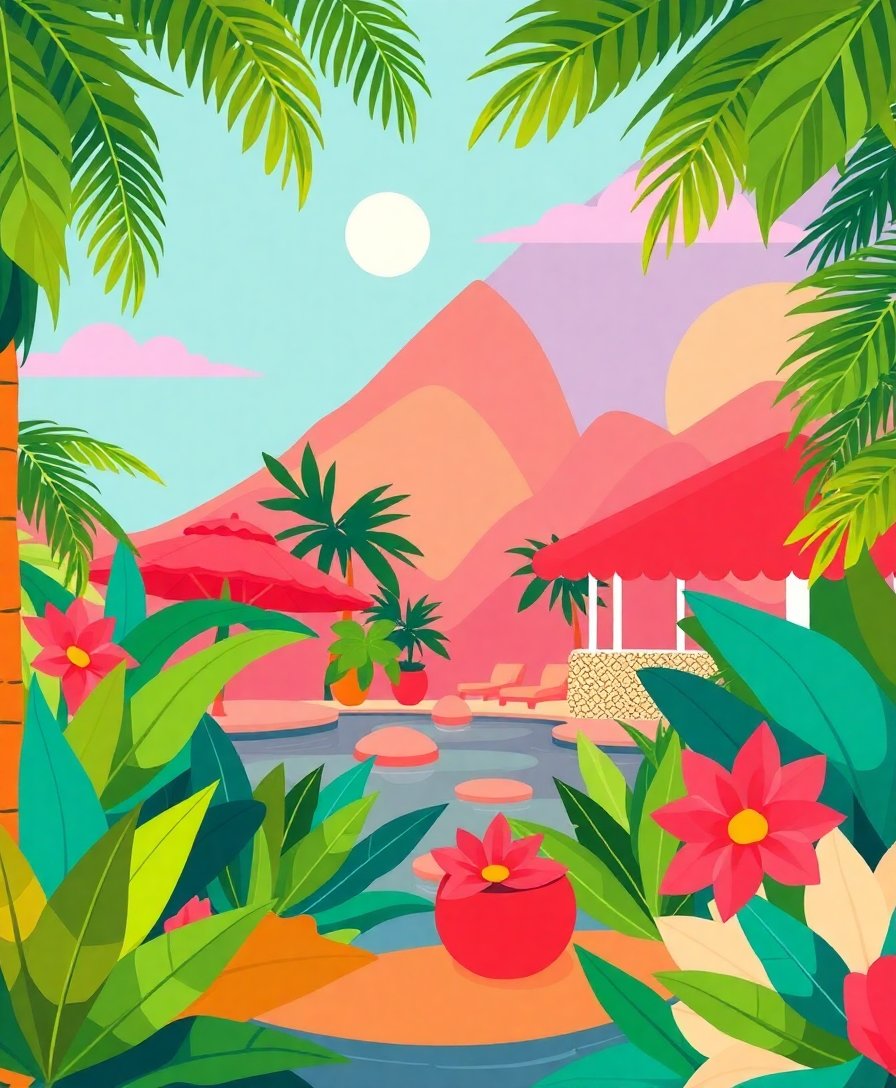 Experience premium quality materials designed for lasting beauty and enjoyment. Moreover, the realistic tropical imagery showcases sophisticated geometric design elements characteristic of mid-century style. Additionally, the vibrant cocktail theme adds personality to any room.