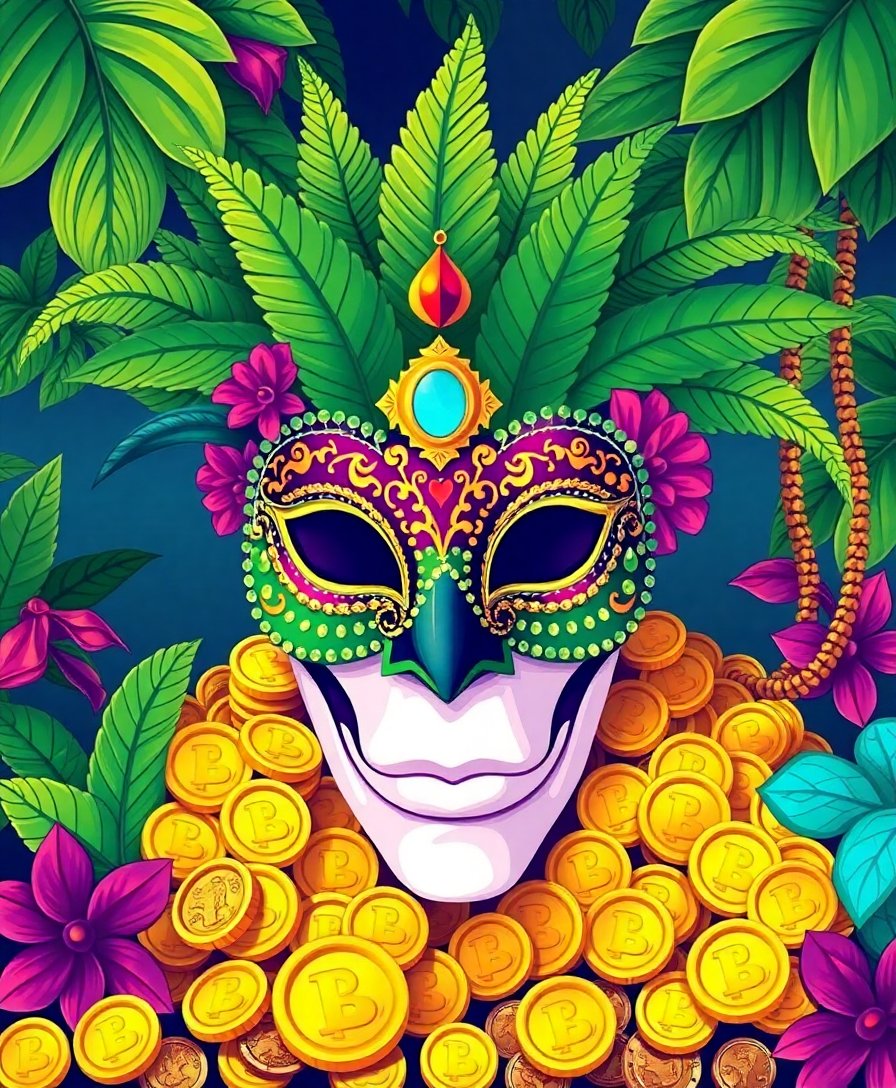 Transform your space into a festive carnival paradise with this stunning Tropical Masquerade Coin Hoard Paint By Numbers kit. This vibrant design captures the enchanting spirit of Mardi Gras celebration through shimmering coins and tropical masquerade elements. Create your own masterpiece while experiencing the joy of this Mardi Gras Masquerade artwork.