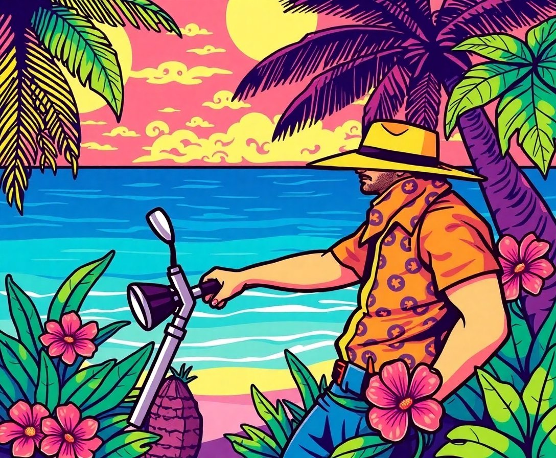 Ultimately, apply final touches to smaller details and highlights. Step back to admire your completed tropical hero scene. The finished piece captures the essence of classic action cinematography while showcasing your artistic achievement.