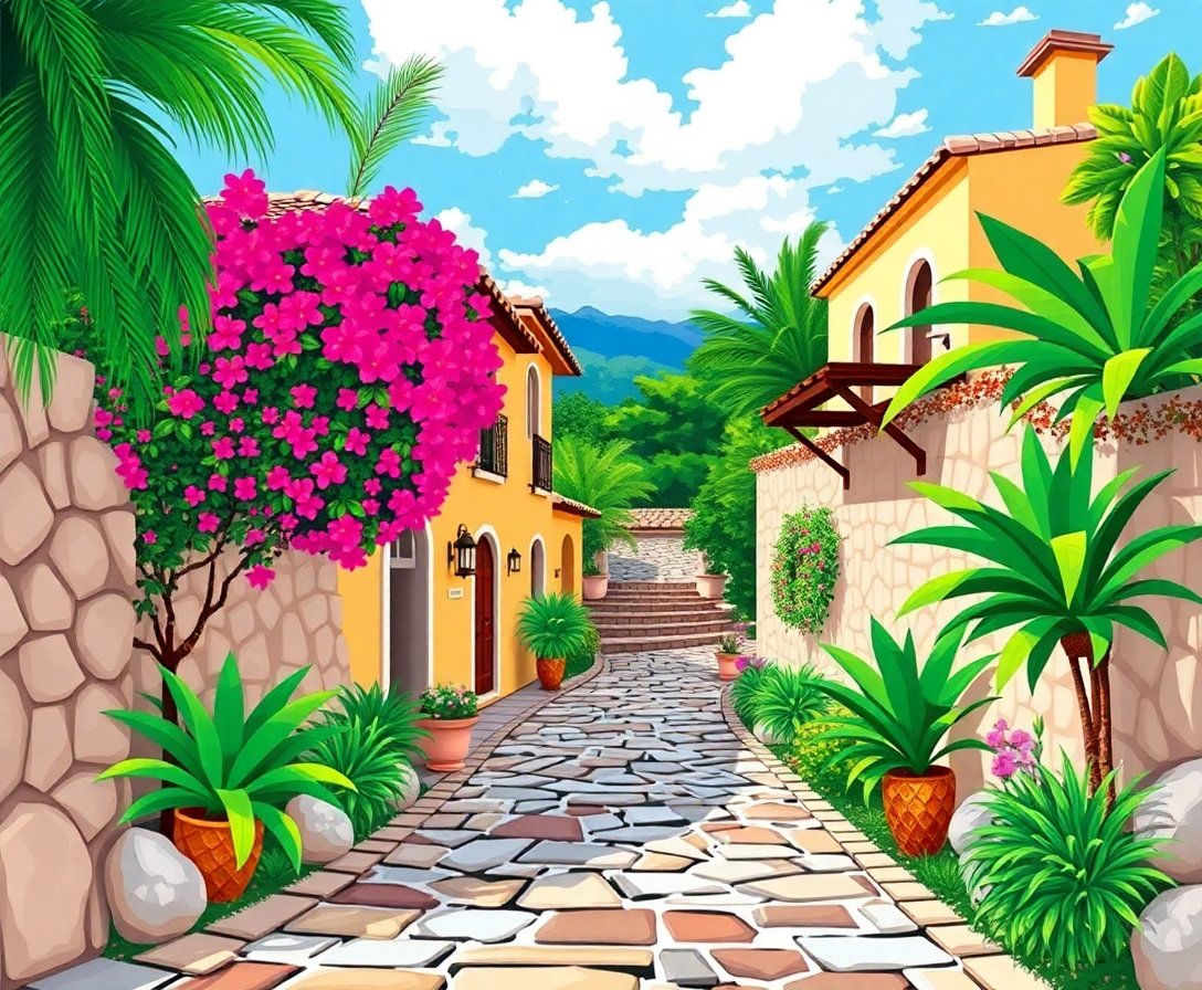 Tropical Mediterranean Stone Walkway Paint By Numbers