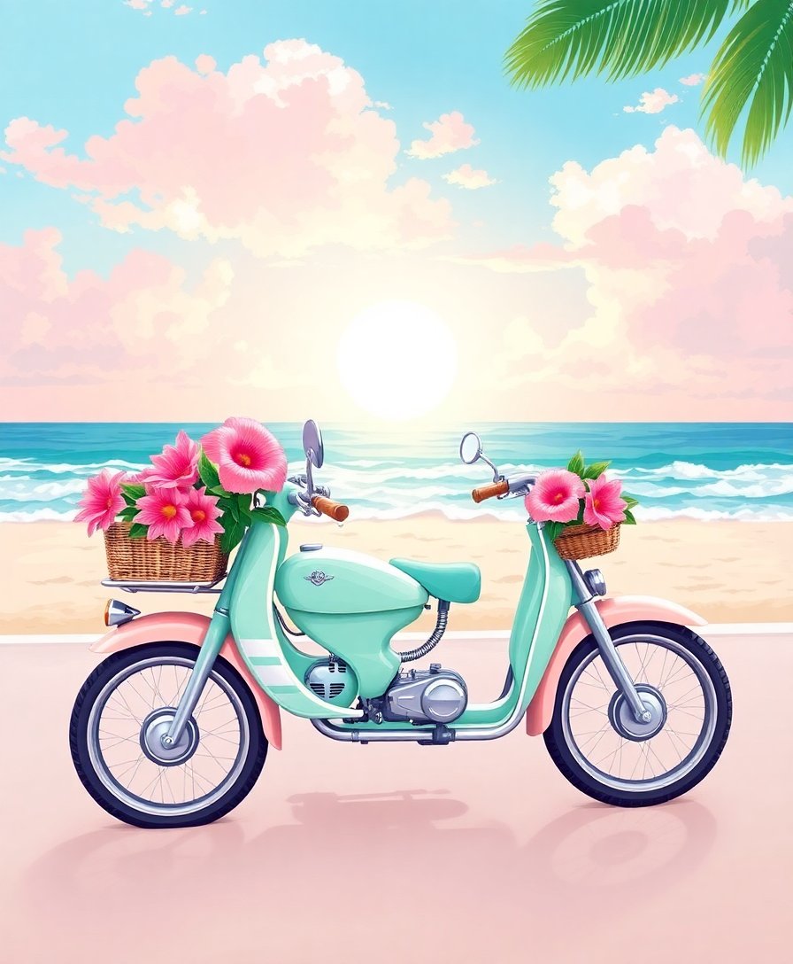 Begin your creative journey today with this enchanting paint by numbers kit. Let the tropical mint beach ride transport you to artistic bliss and springtime serenity.