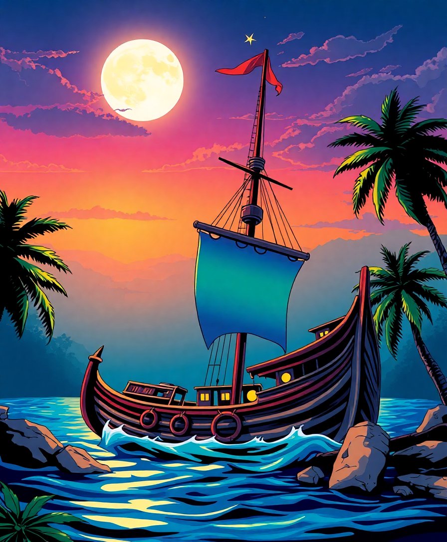 Transform your creative space with this captivating Tropical Moonlit Ghost Ship Paint By Numbers kit. This stunning artwork combines mysterious maritime legends with tropical paradise vibes. Moreover, the luminous moonlight creates an enchanting atmosphere that brings golden era comic book aesthetics to life.