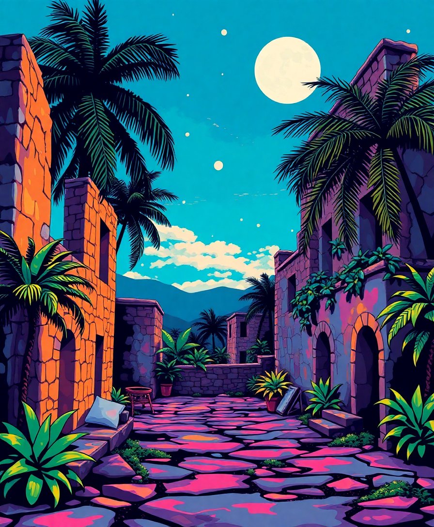 Tropical Night Fever Ruins Paint By Numbers