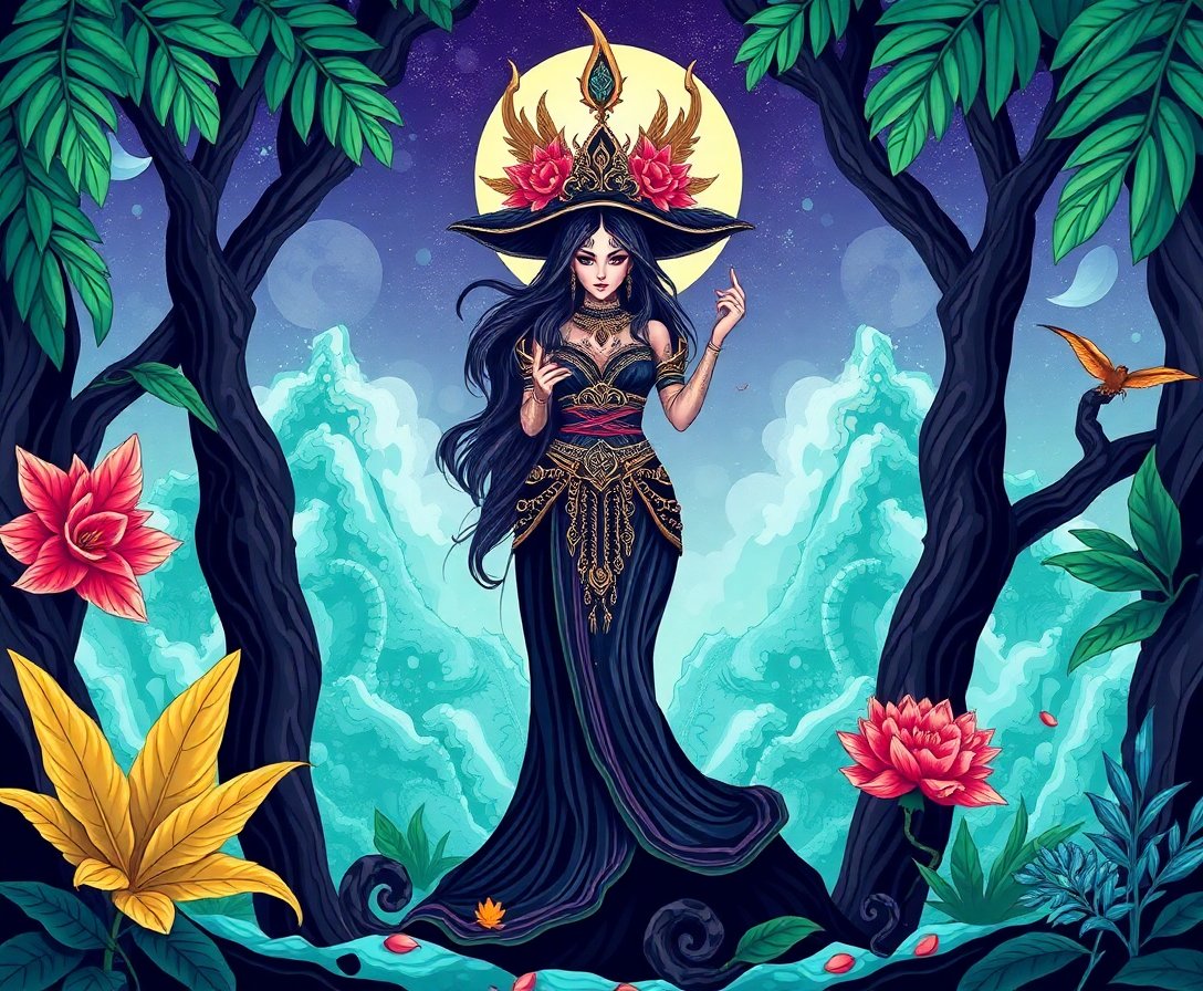 Ultimately, step back and admire your finished sorceress masterpiece. Additionally, the obsidian keep and tropical elements create stunning visual depth. Moreover, your completed artwork becomes a conversation piece for any room.