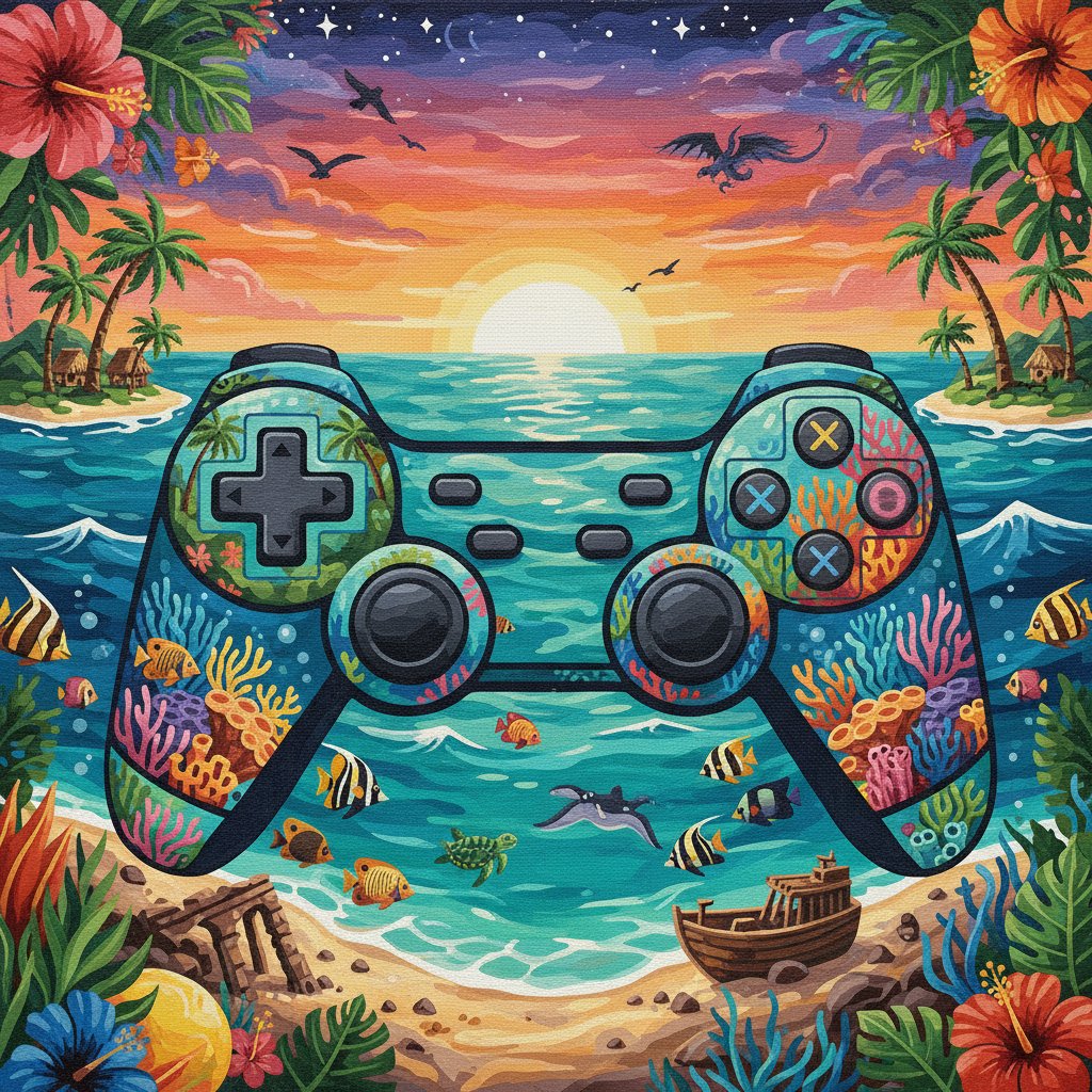 Transform your space with this captivating blend of retro gaming charm and tropical oceanic beauty. Start your artistic adventure today and discover the joy of creating something truly extraordinary.