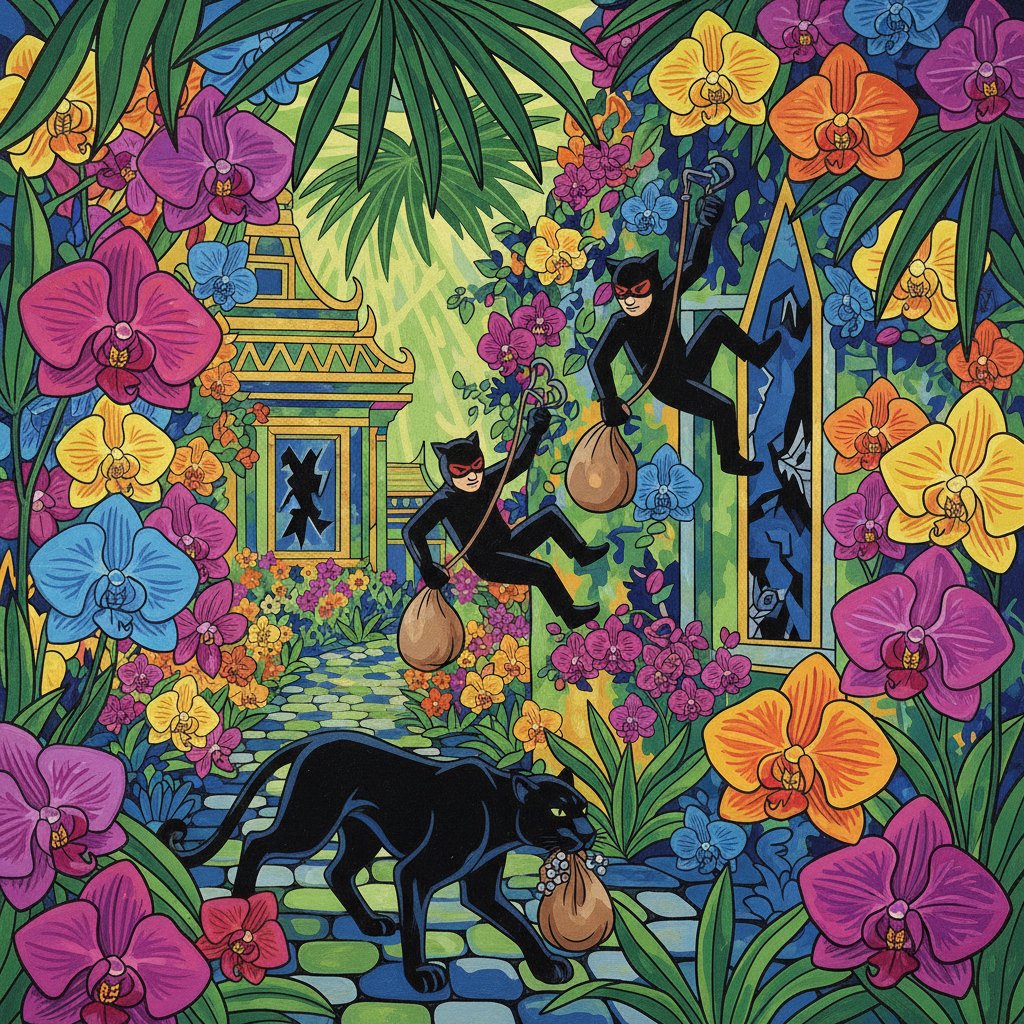 Transform your space with the captivating Tropical Orchid Alley Heist Paint By Numbers kit. This stunning artwork combines noir mystery with vibrant tropical elements. Create your own masterpiece featuring shadowy alleyways adorned with exotic orchids and neon highlights.