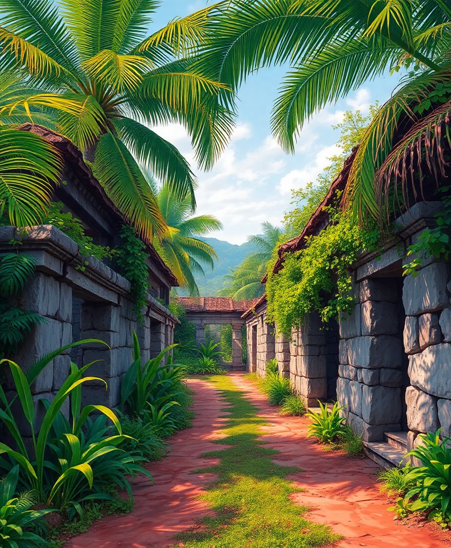Ultimately, step back and admire your completed masterpiece. The tropical foliage now cascades naturally over ancient structures. Your finished artwork captures the mysterious beauty of nature reclaiming civilization.