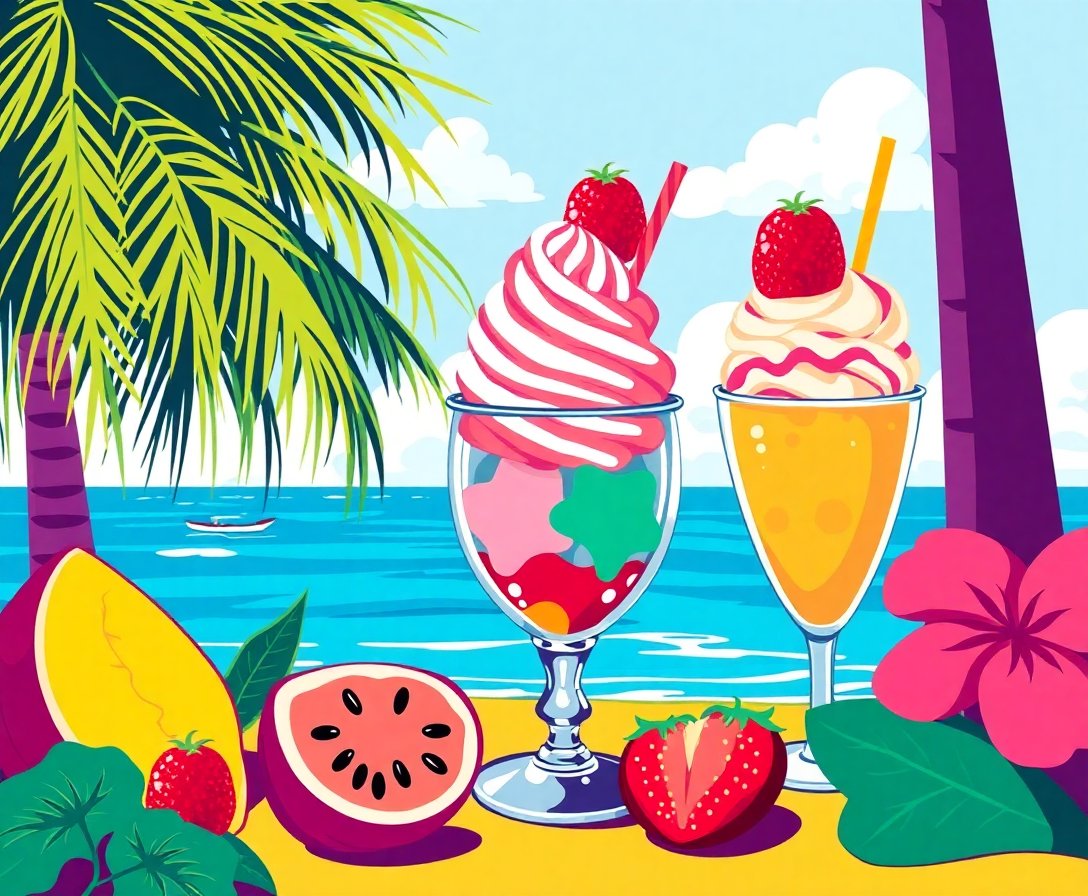 Ultimately, step back and admire your finished tropical sundae masterpiece. Furthermore, the vibrant colors and nostalgic charm create an eye-catching focal point for any room.