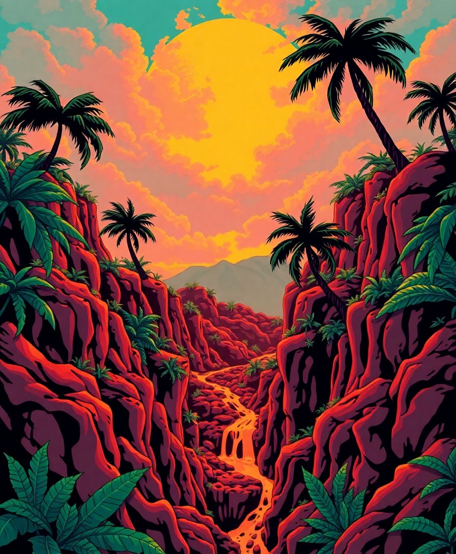 Transform your space with the captivating Tropical Pulp Lava Grid Paint By Numbers, a stunning tribute to golden era comic artistry. This exceptional kit brings volcanic drama and tropical adventure directly to your easel.