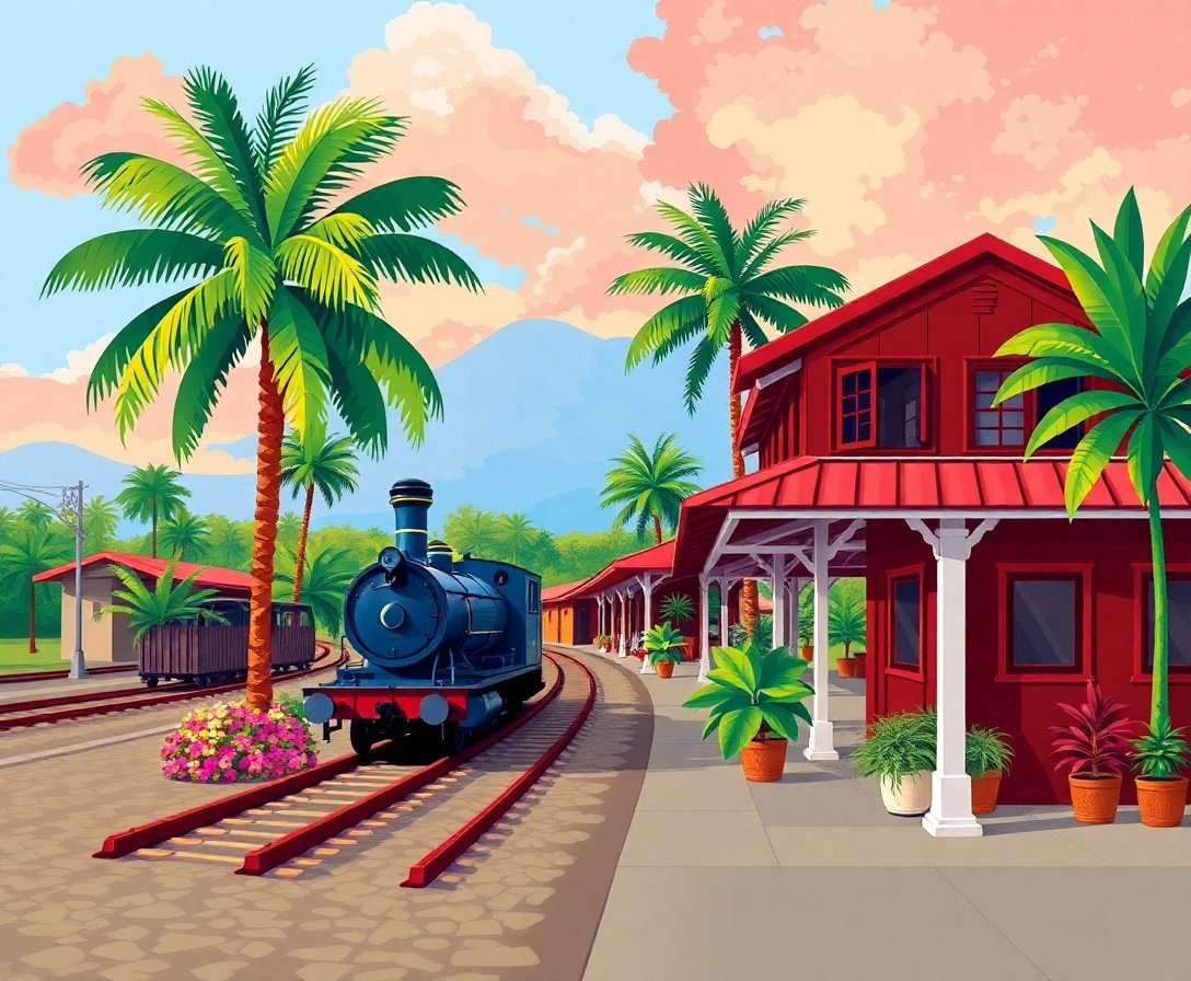Ultimately, complete the finest details using your small brush for precision work. Finally, step back and admire your tropical railway masterpiece. Consequently, you’ll feel immense satisfaction from creating this stunning architectural scene.