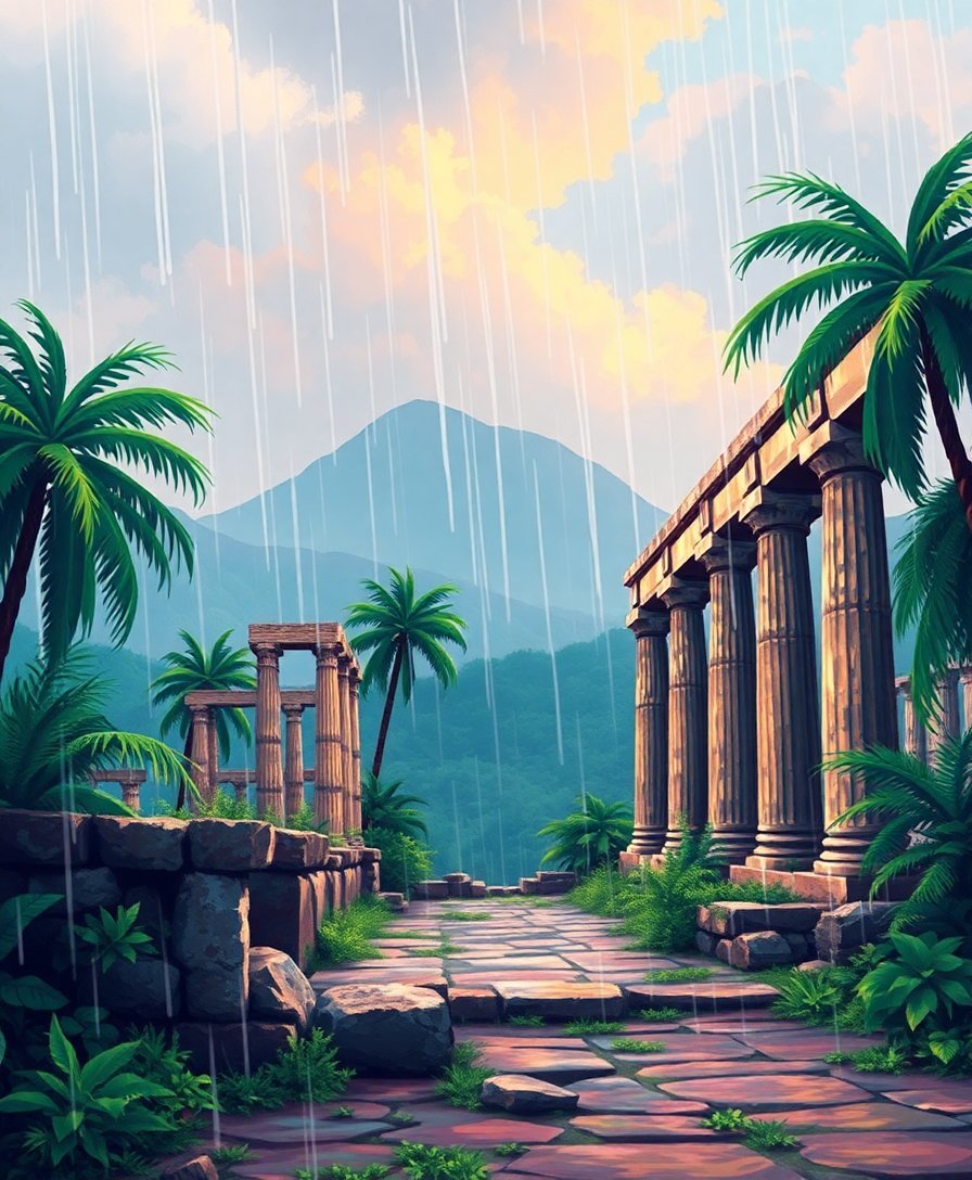 Tropical Rain Swept Ruins Paint By Numbers