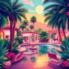 Ultimately, witness your masterpiece come together as the final strokes complete the scene. Additionally, the finished artwork showcases stunning tropical elements and glamorous poolside details. Your completed painting will radiate the timeless appeal of Old Hollywood Glamour combined with exotic paradise vibes.
