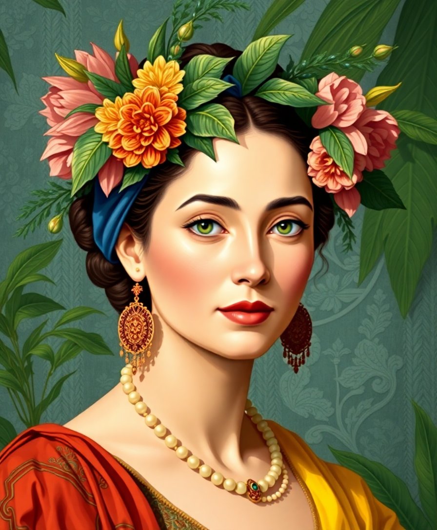 This unique design combines classical nobleman portraiture with tropical verdant elements, creating a distinctive cultural artwork. The historical significance adds depth to your artistic experience.