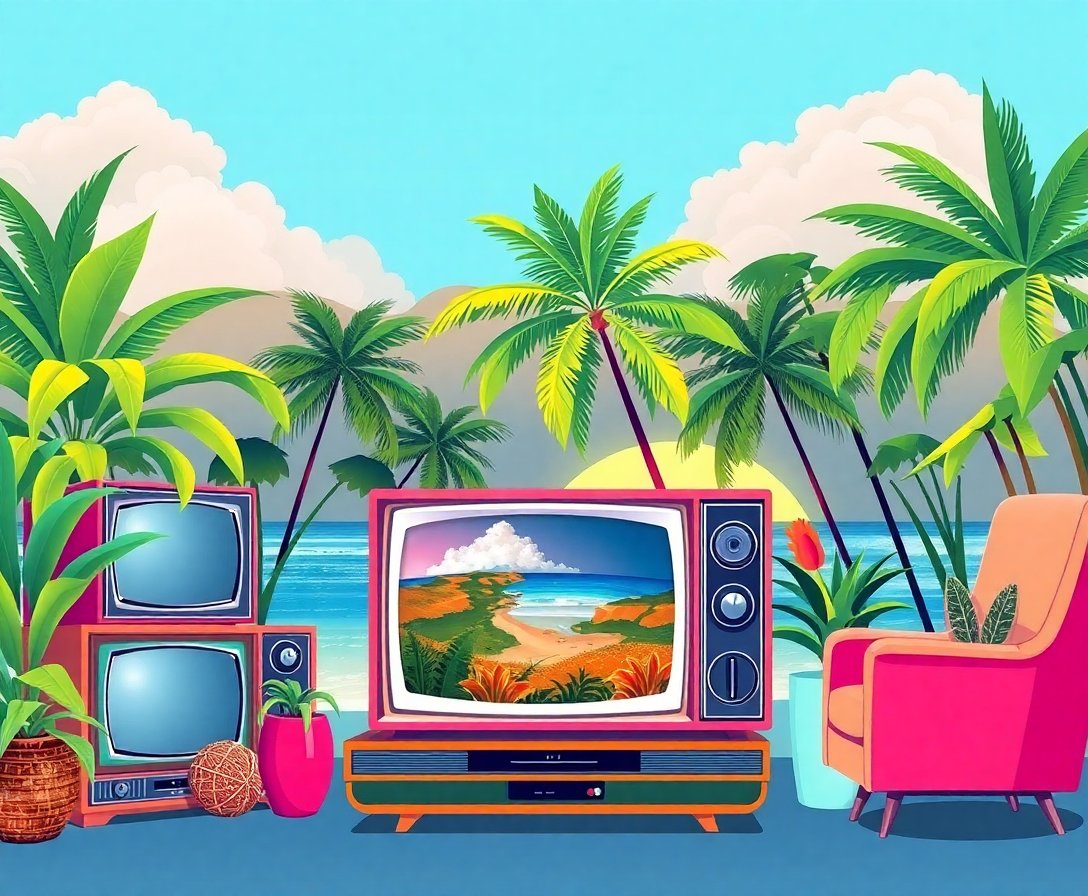Embrace the golden age of broadcasting while creating your own tropical masterpiece. This delightful painting journey combines relaxation with artistic achievement beautifully.