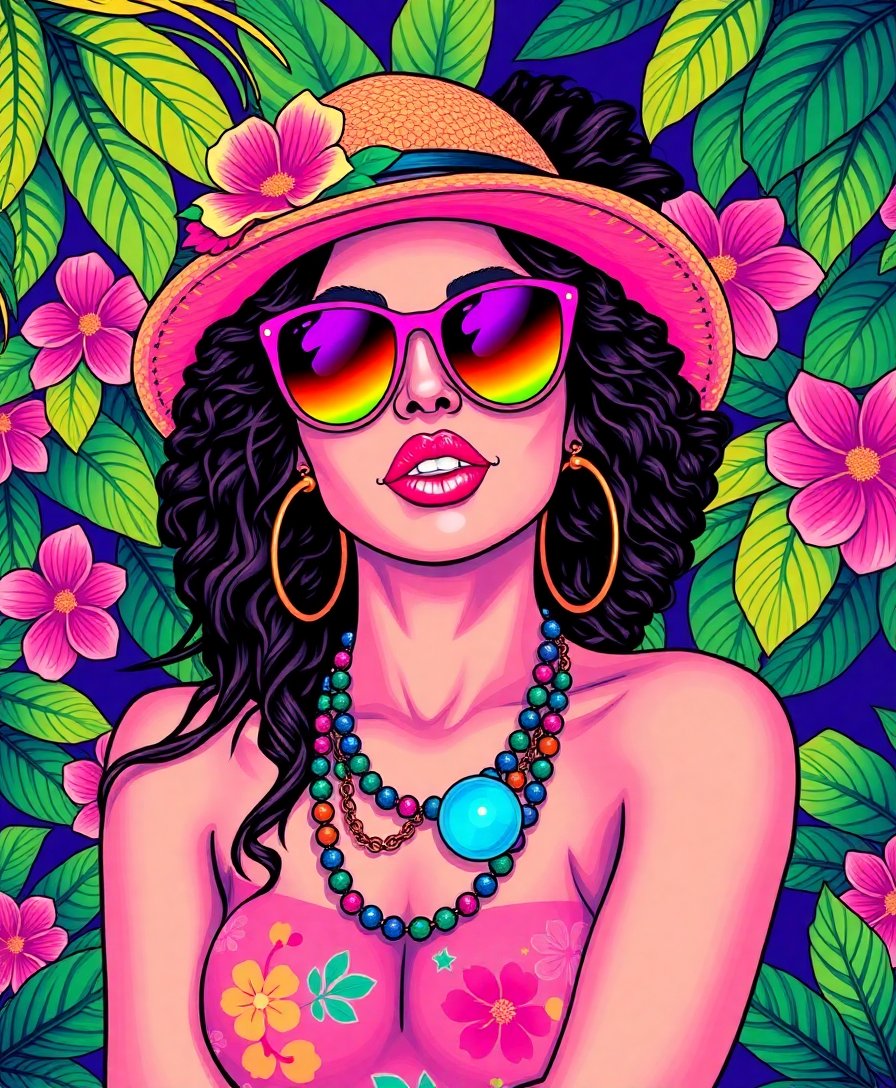 Transform your creative space with this vibrant Tropical Roller Disco Portrait Paint By Numbers masterpiece. This captivating design blends retro neon aesthetics with tropical vibes. Experience the joy of recreating this stunning portrait through guided painting.