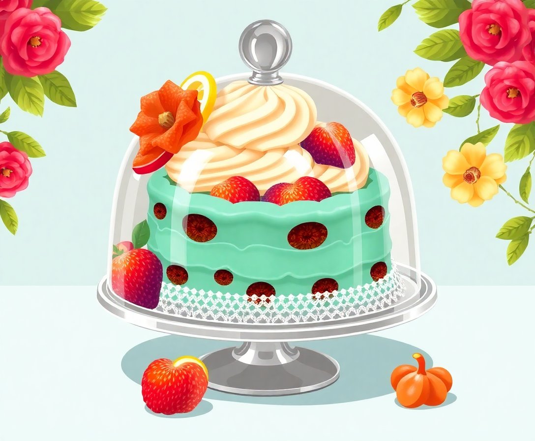 Ultimately, step back and admire your finished tropical cake cloche creation. Moreover, the golden hues and dessert details create stunning visual appeal. Finally, your completed masterpiece deserves prominent display in your favorite space.