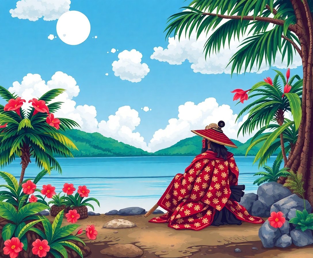 Embark on this artistic journey and create a stunning tribute to ancient Japanese warriors. Your Tropical Samurai Repose masterpiece awaits your personal touch and creative vision.