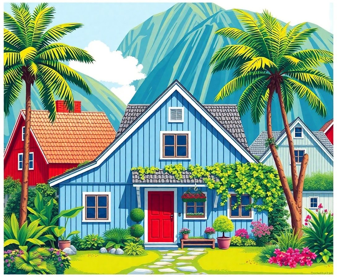 Transform your space with the enchanting beauty of Nordic charm through our Tropical Scandinavian Village House Paint By Numbers kit. This unique masterpiece combines vibrant tropical flora with traditional Scandinavian architecture. Create a stunning artwork that captures the warmth of exotic landscapes meeting classic fjord village aesthetics.