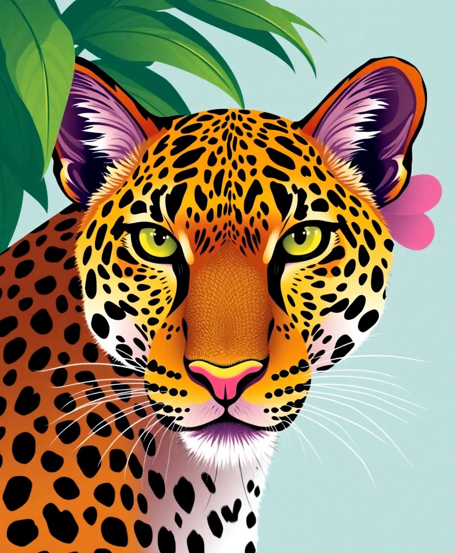 The high-quality linen canvas measures standard size for easy framing and display. The detailed design showcases every tropical shadow and leopard print element beautifully.
