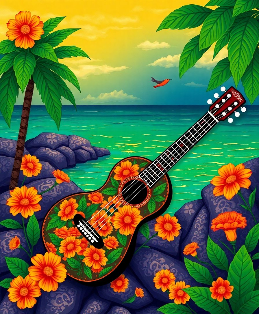 Tropical Shoreline Marigold Guitar Paint By Numbers