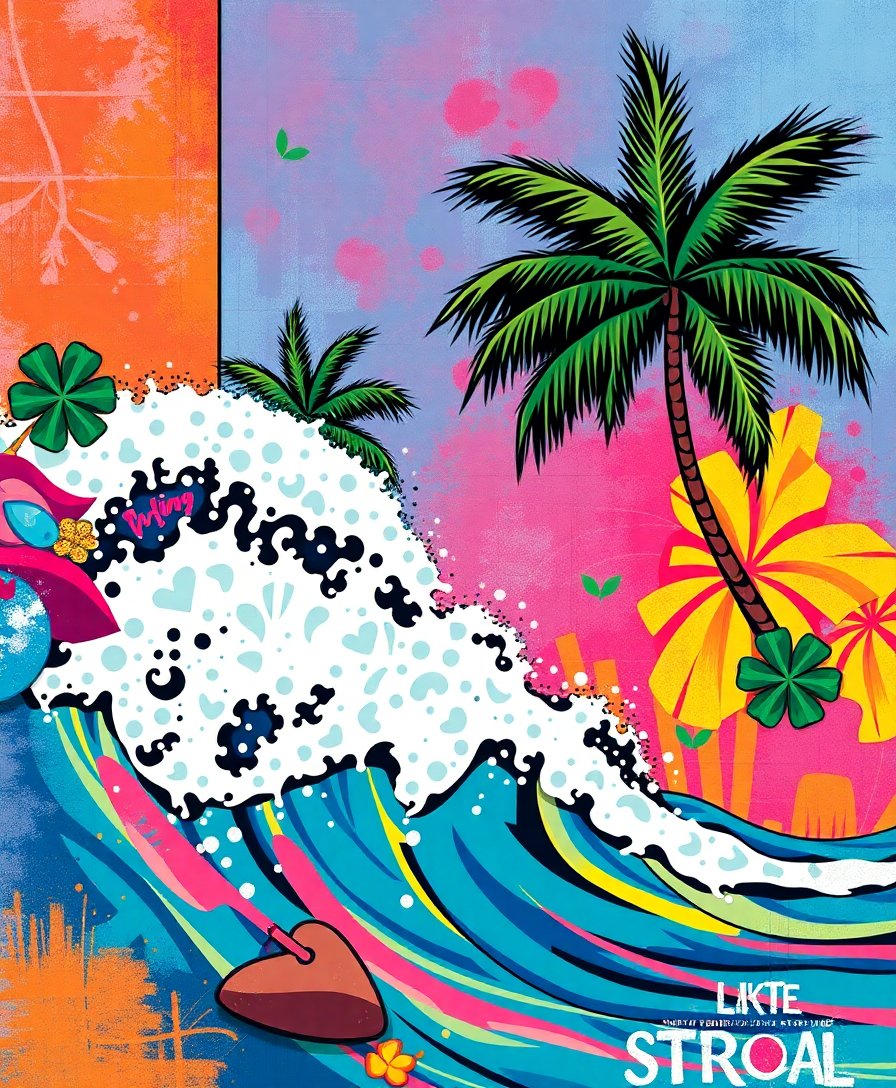 Finally, discover the joy of creating your own coastal street art masterpiece. Additionally, spray paint techniques inspire this design’s authentic urban appeal. Transform blank walls into tropical art galleries today.