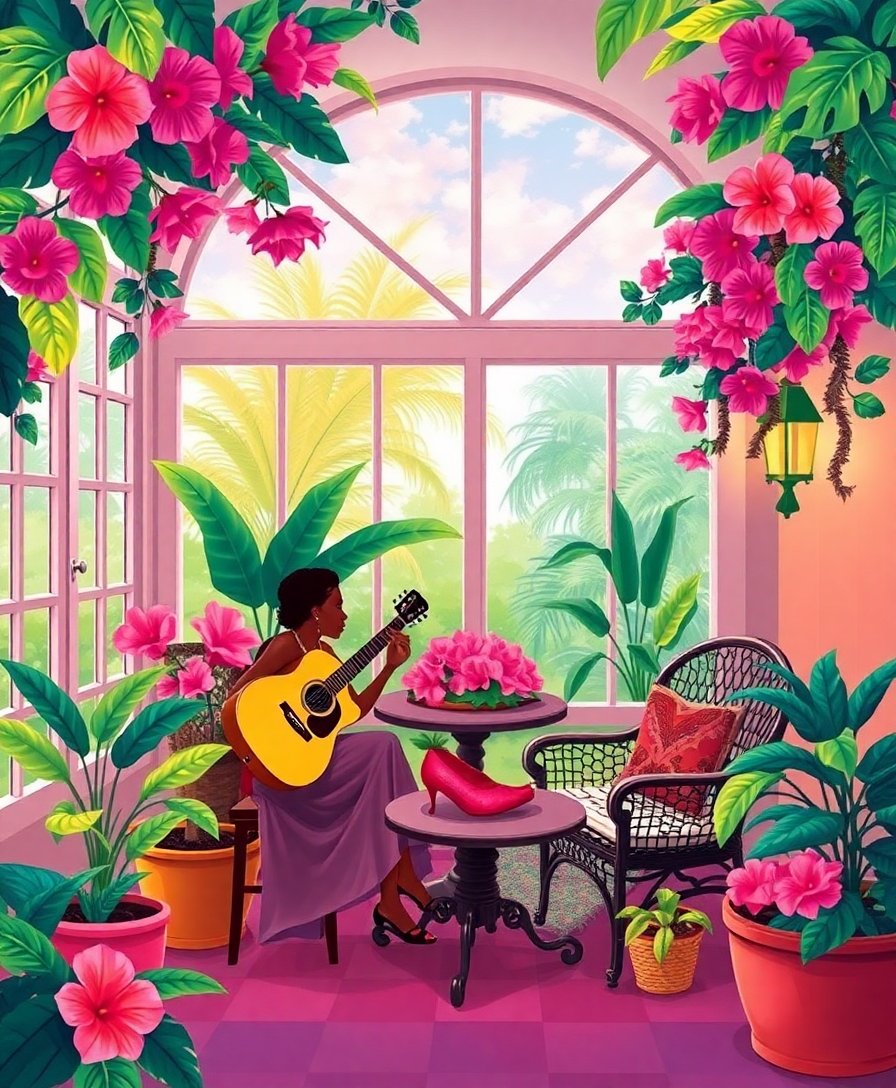 Transform your creative space into a romantic paradise with the Tropical Sunroom Serenade Paint By Numbers kit. This enchanting design captures intimate moments where tropical sunlight dances through lush monstera leaves. Moreover, the gentle guitar melody seems to whisper through the canvas.