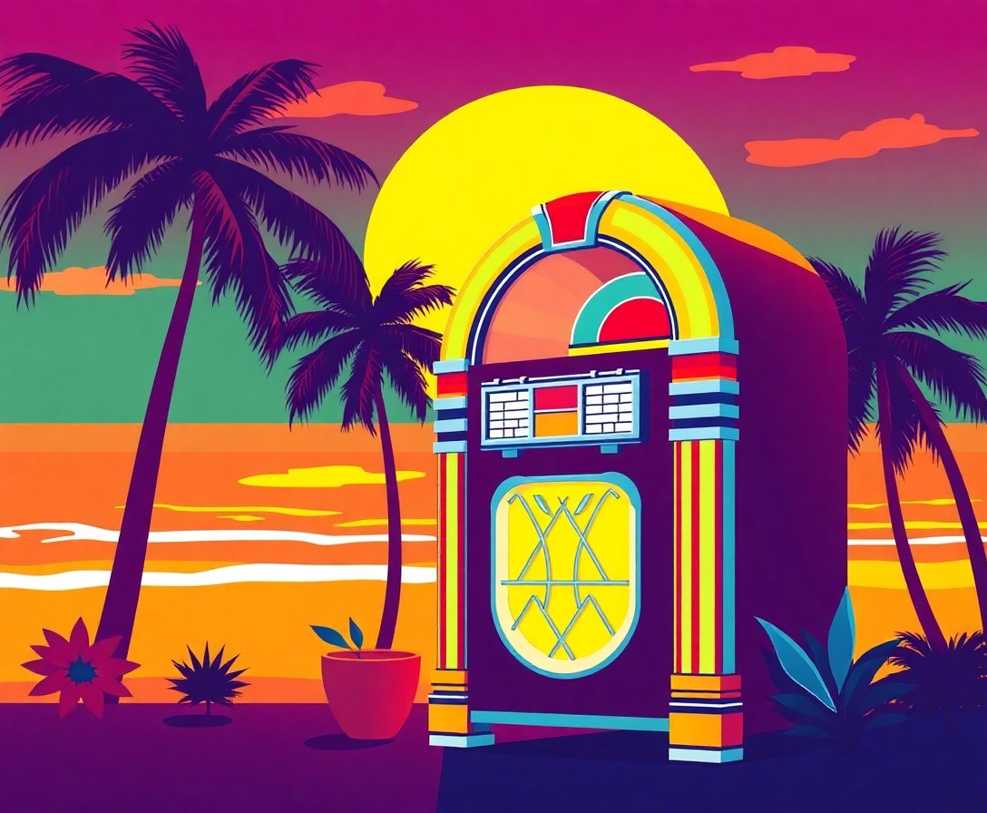 Ultimately, step back and admire your completed vintage jukebox masterpiece. The realistic neon glow effect brings authentic vintage aesthetics to life beautifully. Therefore, your tropical sunset creation becomes a stunning conversation piece.
