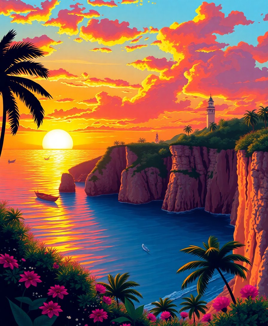 Tropical Sunset Over Spires Paint By Numbers