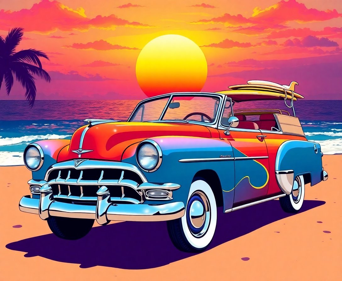 Tropical Sunset Surf Cruiser Paint By Numbers