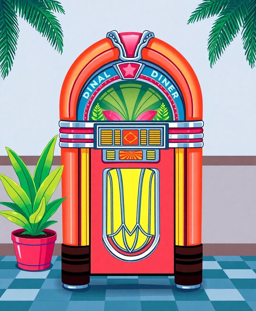Ultimately, add final details and chrome highlights that bring your diner scene to life. Step back frequently to admire your progress. Your completed artwork captures the timeless appeal of Classic Diner Jukeboxes and coastal culture.