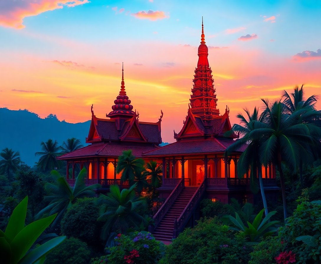 Transform your space with the enchanting beauty of a Southeast Asian temple at twilight. This Tropical Temple Dusk Paint By Numbers kit captures the serene magnificence of ornate pagoda architecture bathed in warm, golden light. Moreover, lush tropical foliage frames this breathtaking scene perfectly.