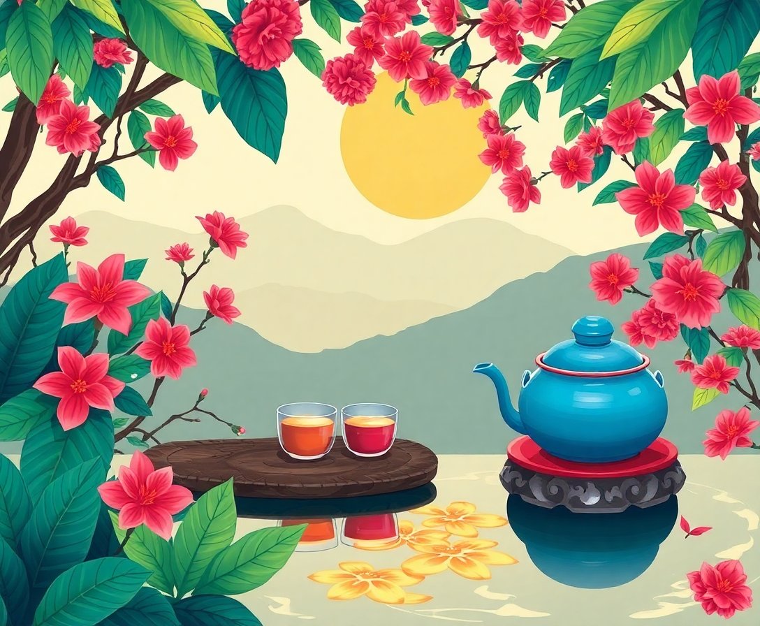 Ultimately, add the finest details with your small brush to complete your masterpiece. These finishing touches bring the tropical teaware to life. Your completed artwork radiates the peaceful essence of Japanese tea ceremony traditions.