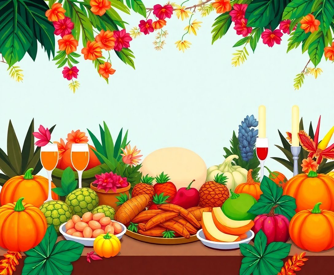 Yes! The tropical elements make this feast display suitable for various occasions beyond Thanksgiving, adding warmth and abundance to any seasonal décor.