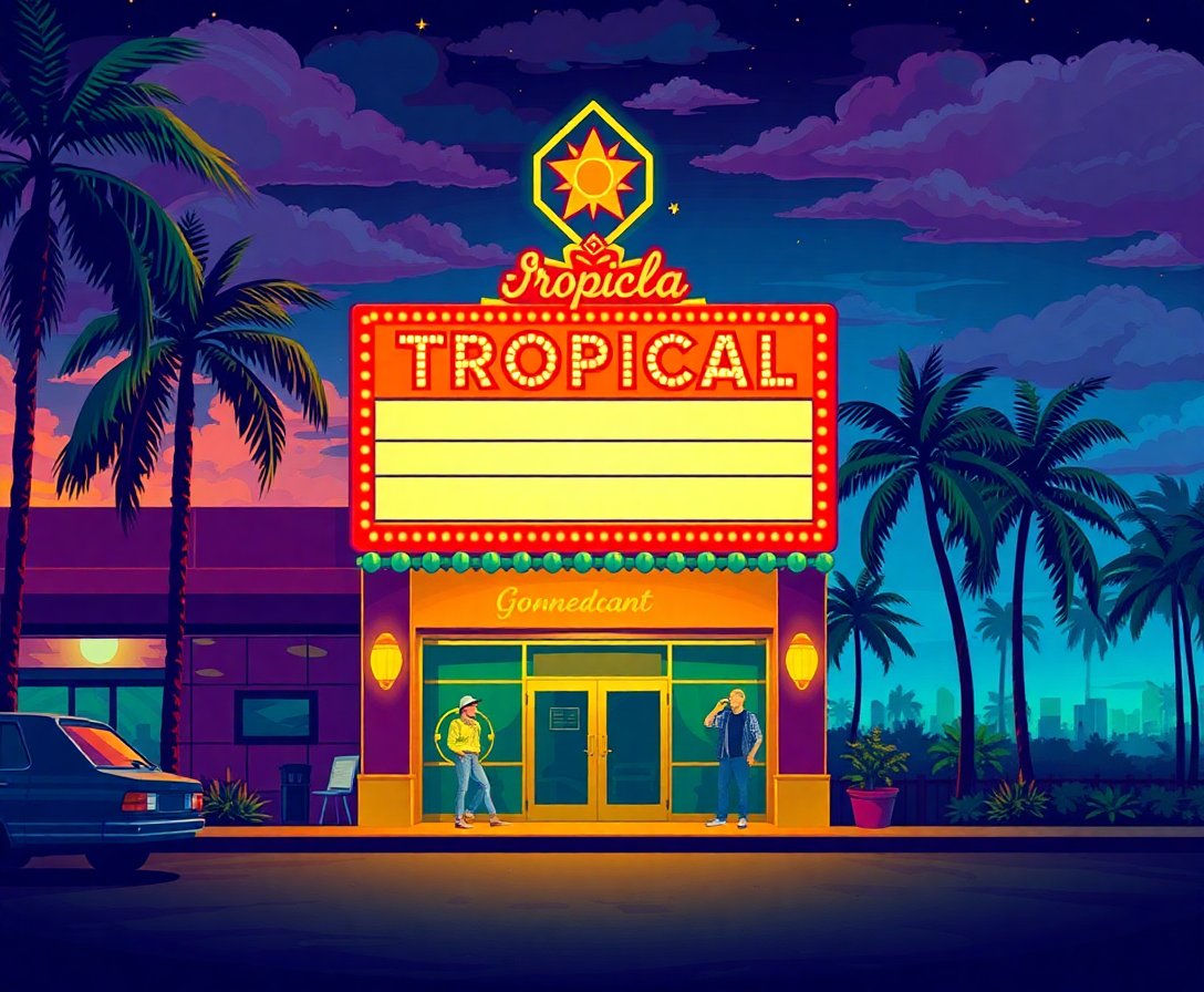 Ultimately, step back and admire your glowing tropical theater marquee creation. Indeed, the neon lights and vintage signage transport viewers to a bygone entertainment era. Thus, your finished piece becomes a conversation starter.
