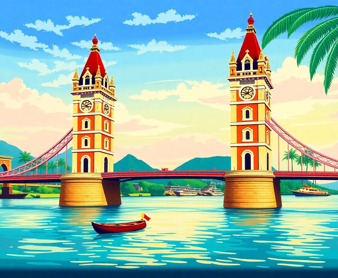 Transform your artistic journey with the stunning Tropical Twin Tower Bridge Paint By Numbers, a captivating kit that brings architectural elegance to life. This breathtaking design showcases majestic suspension towers rising against azure tropical skies, creating a perfect blend of engineering marvel and natural beauty.