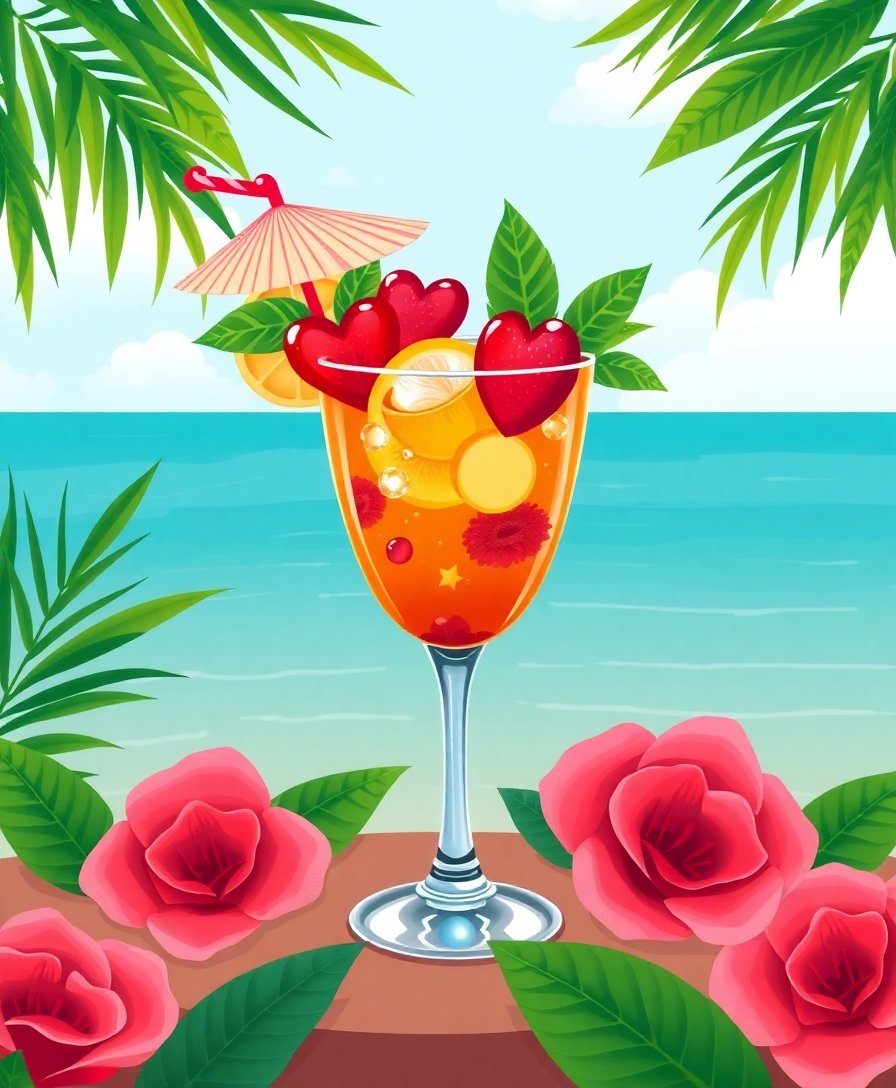 Ultimately, step back and admire your completed tropical valentine masterpiece. The mai tai-inspired colors create a stunning visual celebration of romance. Your finished artwork captures both tropical warmth and valentine sentiment beautifully.