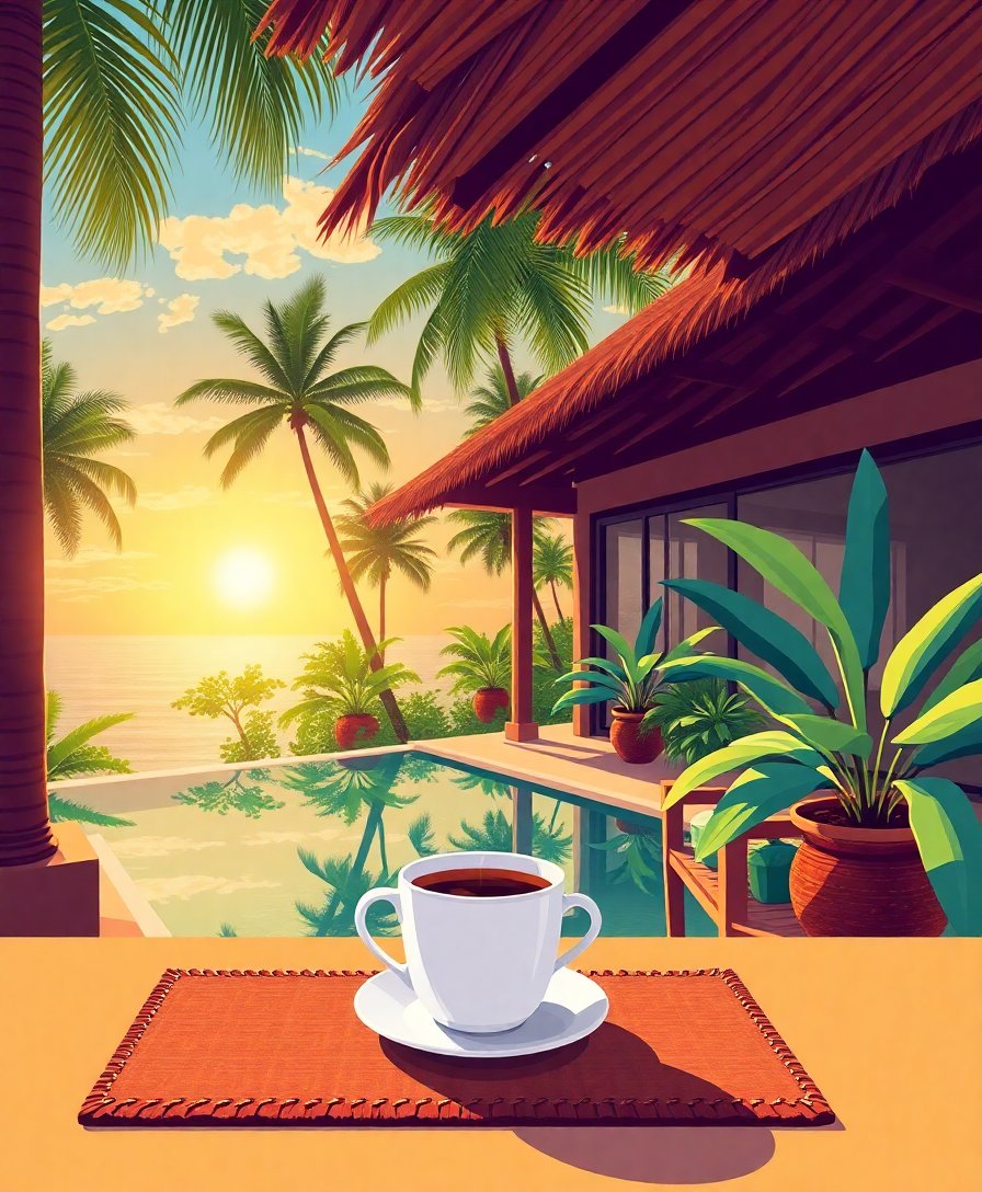 Tropical Villa Morning Coffee Paint By Numbers