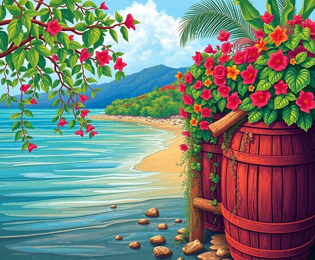 What’s Included in Your Tropical Vines Reclaiming Barrels Paint By Numbers Kit