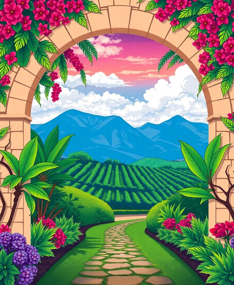 Create your own tropical paradise today and experience the joy of bringing this magnificent vineyard estate arch to life through paint.