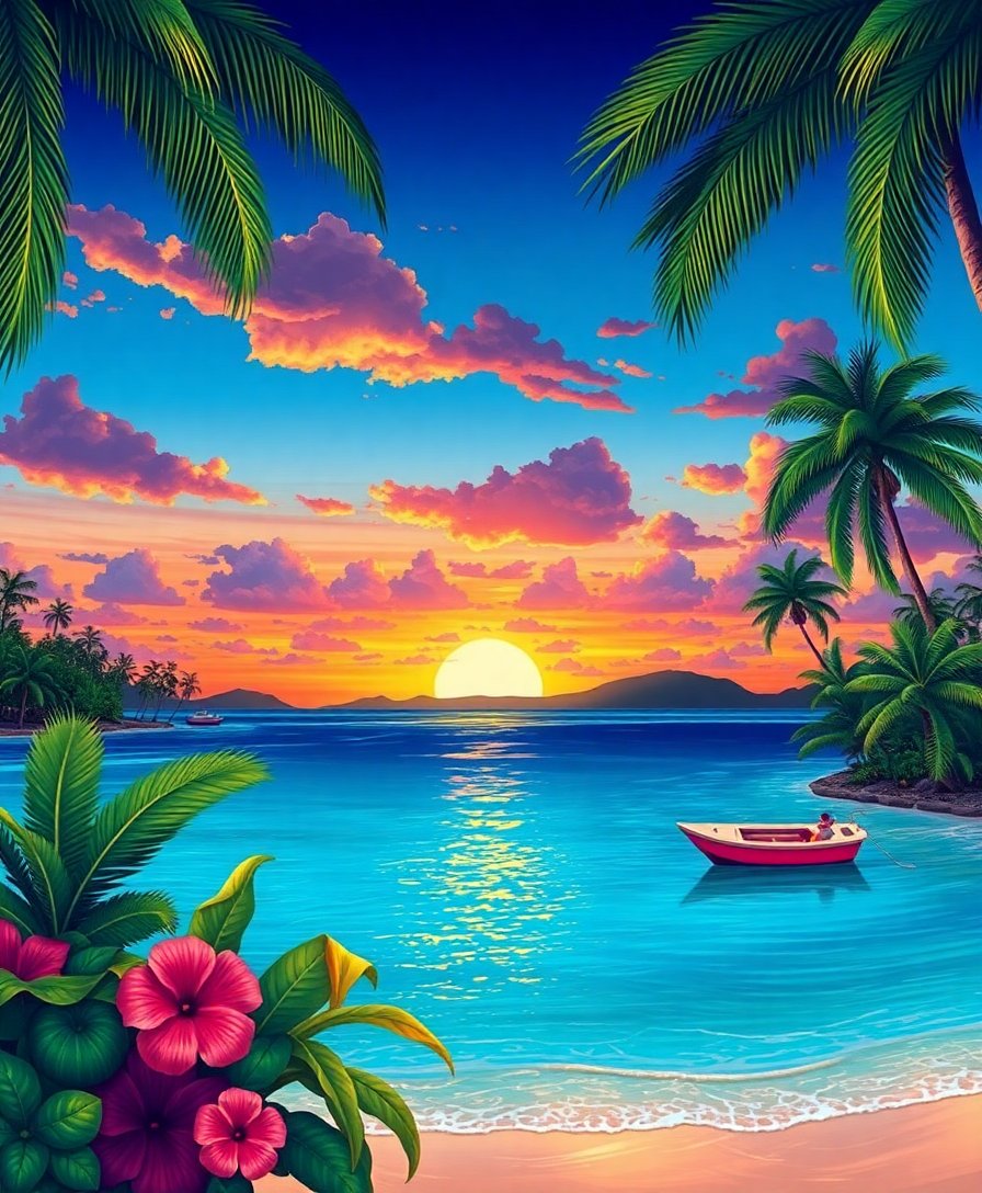 The high-quality linen canvas provides ample space for detailed tropical scenery while remaining manageable for home display and framing.