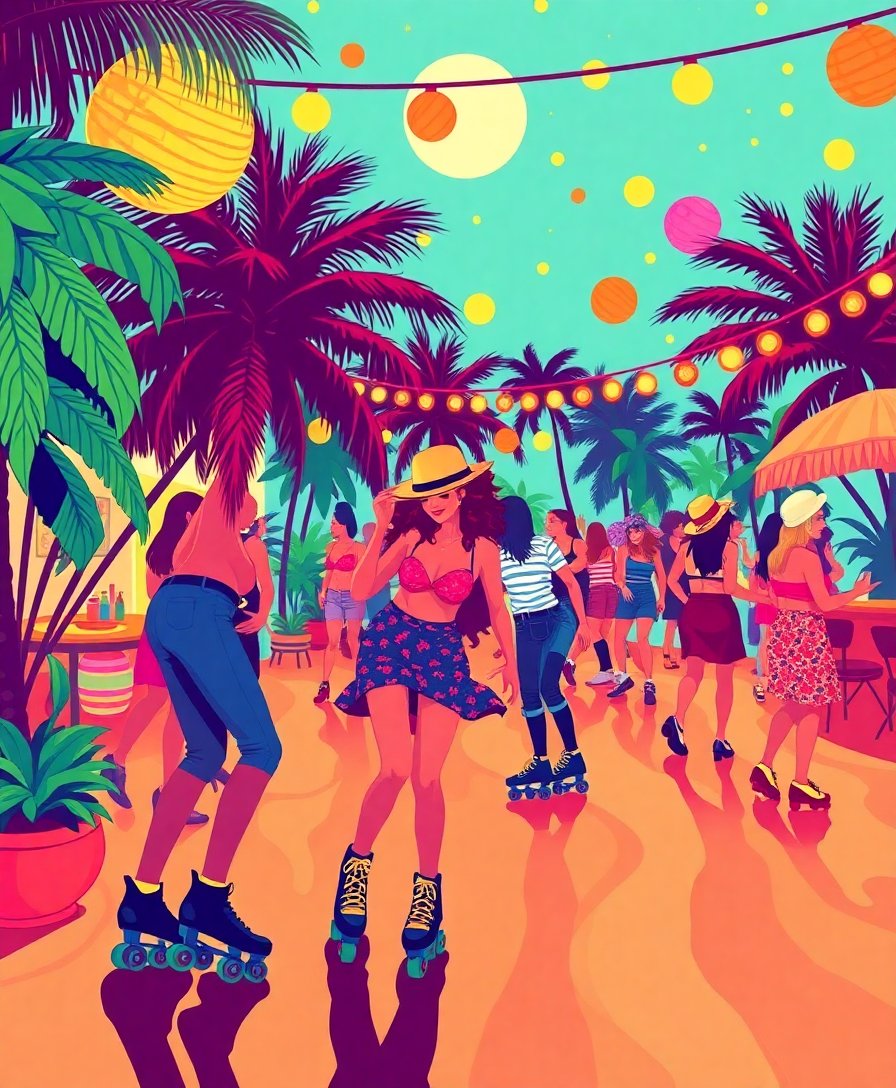 Transform your space with vibrant tropical vibes through this captivating Tropical Vinyl Roller Disco Paint By Numbers kit. This artistic journey combines retro disco aesthetics with palm-fringed paradise, creating an unforgettable creative experience that celebrates the golden era of roller skating culture.