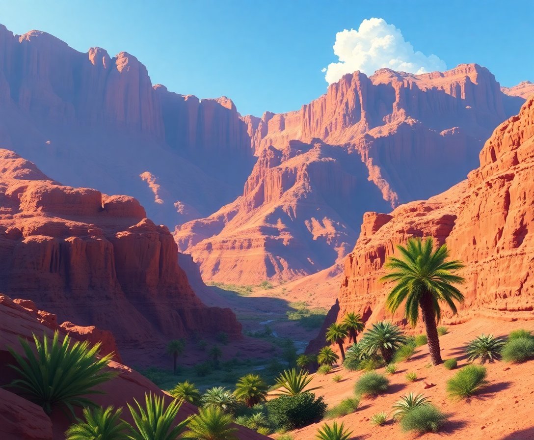 Transform your creative space with this stunning Tropical Wadi Shadows Paint By Numbers masterpiece. This exceptional kit brings the serene beauty of a desert oasis directly to your home. Moreover, the lush greenery and realistic canyon shadows create an immersive artistic experience.