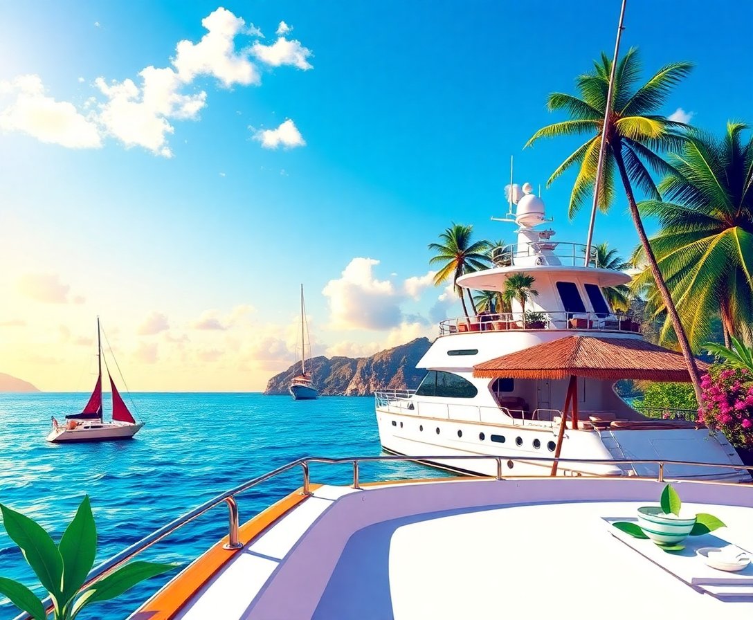 Ultimately, step back and admire your completed tropical seascape. Add final touches to enhance the yacht’s gleaming details. Finally, your finished masterpiece captures the essence of luxury sailing perfectly.