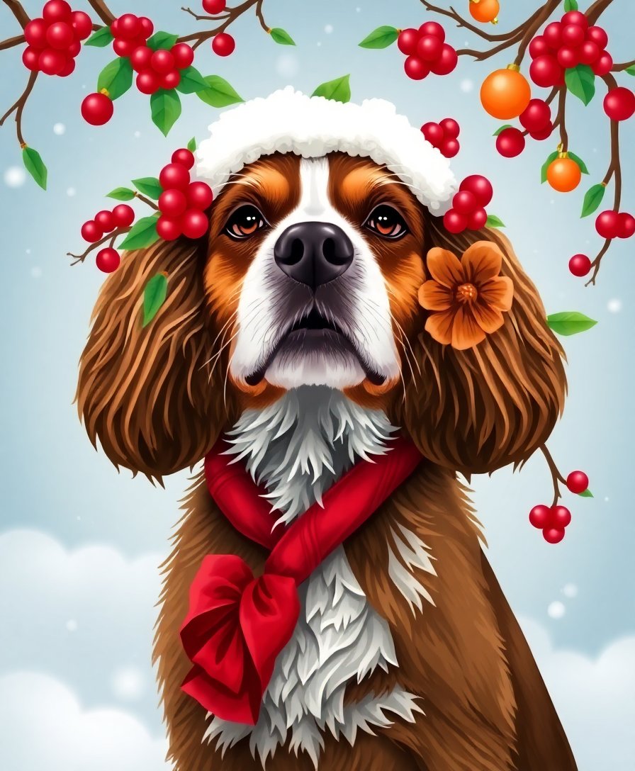 Begin your artistic journey today with this captivating Tropical Yule Spaniel Portrait Paint By Numbers kit. Therefore, create lasting memories while developing your painting skills through this engaging holiday crafting experience.