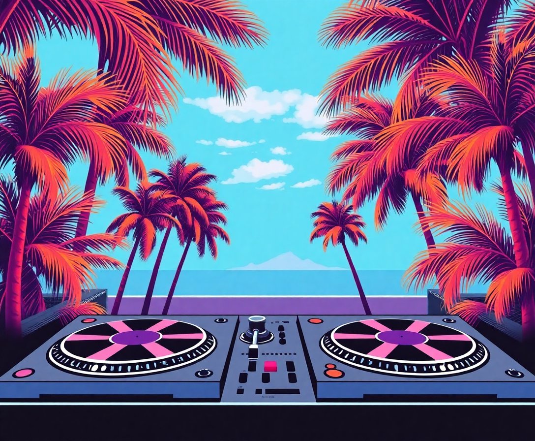 Ultimately, step back and admire your completed vintage roller disco scene. Additionally, the realistic palm leaves and DJ mixer details create stunning visual impact. Moreover, your finished piece becomes a conversation starter in any room.