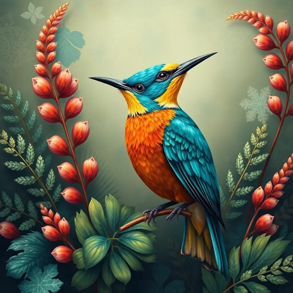 Subsequently, begin painting each numbered section with its corresponding color. Start with larger areas first, then move to intricate details. Watch as the turquoise bird emerges gracefully among the vintage fronds, bringing life to your canvas with every careful stroke.