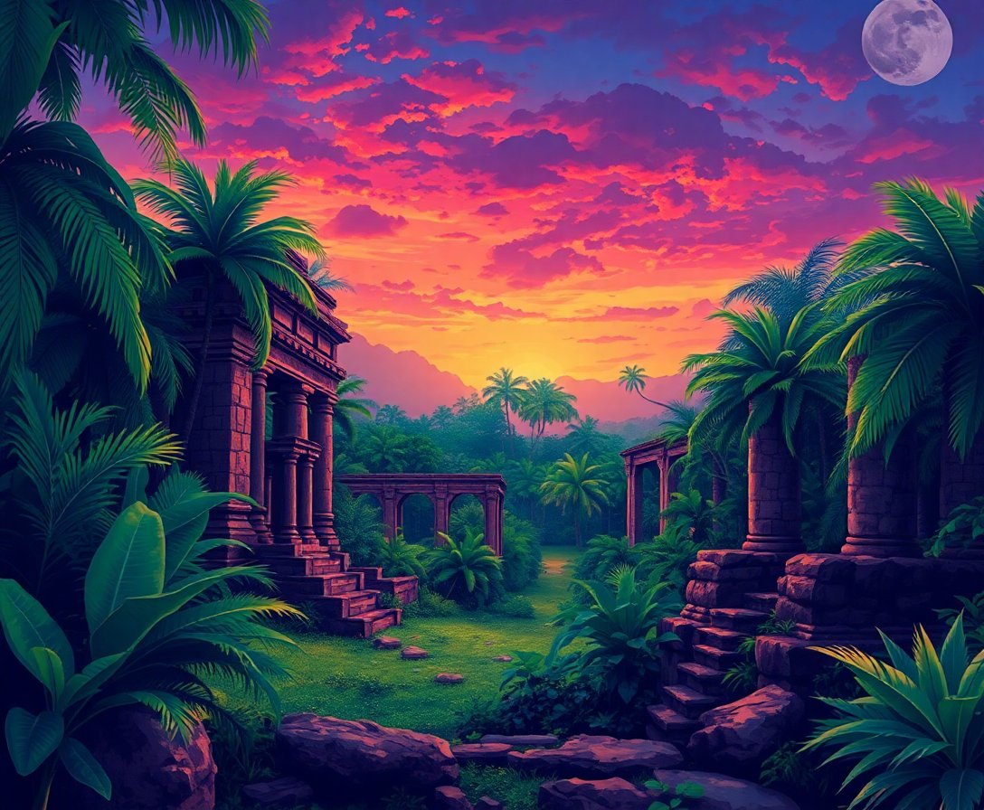 Ultimately, step back to admire your completed tropical ruins scene as evening light filters through ancient stones. The final touches bring depth and atmosphere to your creation. Your finished artwork becomes a conversation piece celebrating forgotten civilizations.