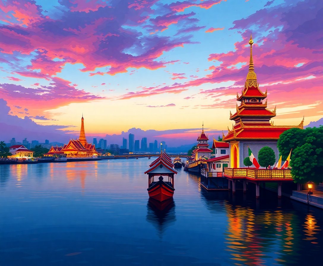 Ultimately, step back and admire your finished masterpiece glowing with twilight magic. The completed painting captures the peaceful essence of Chao Phraya’s sacred temples. Display your artwork proudly, knowing you’ve created something truly meaningful and beautiful.